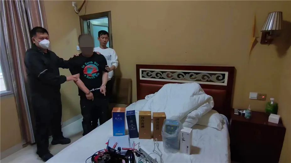 接警后,民警立即展开侦查工作,锁定了嫌疑人郭某堂。当天上午9时许,民警在螺城镇某宾馆内将其抓获,当场缴获未来得及销赃的白酒十余瓶。随后,民警在某烟酒行追回十多箱各类名贵酒水。