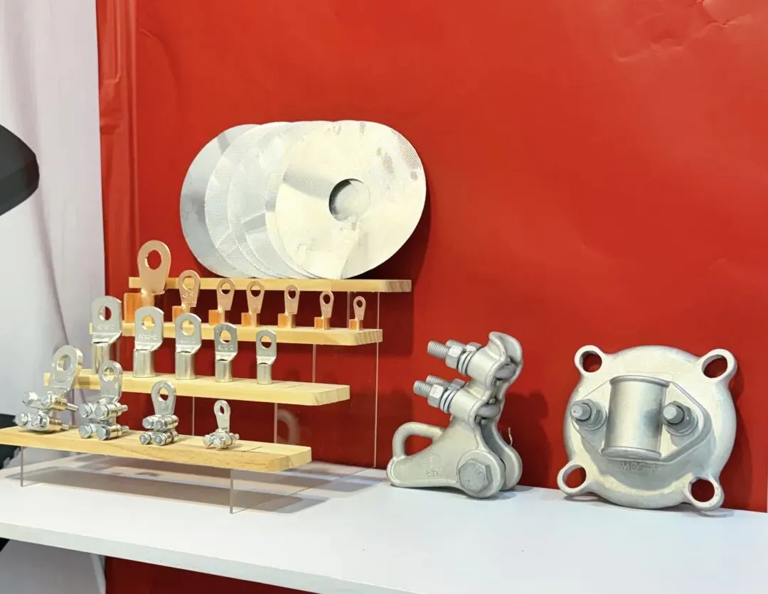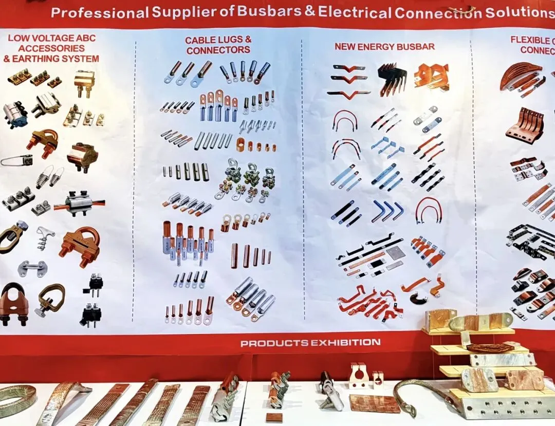 金锢电气携•新能源软排、新能源硬排系列、铜铝软连接、编织线系列、导电带、母线排、导电排、叠片式绝缘软母排系列、异形铜铝端子、铜铝鼻子系列、并沟线夹、设备线夹、导电夹、接地系列线夹产品一同参展。