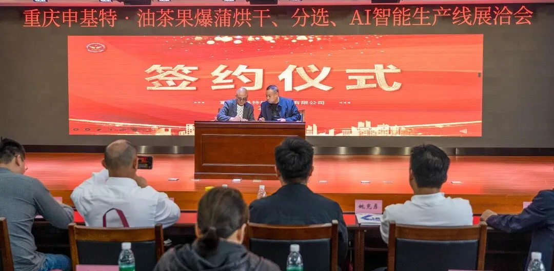 4月15日,重庆申基特机械制造有限公司(以下简称:申基特)油茶果智能生产线展洽会在白沙工业园召开,现场发布了全国首条油茶果爆蒲烘干、分选及AI智能生产线,当日签订意向订单总额突破1000万元。