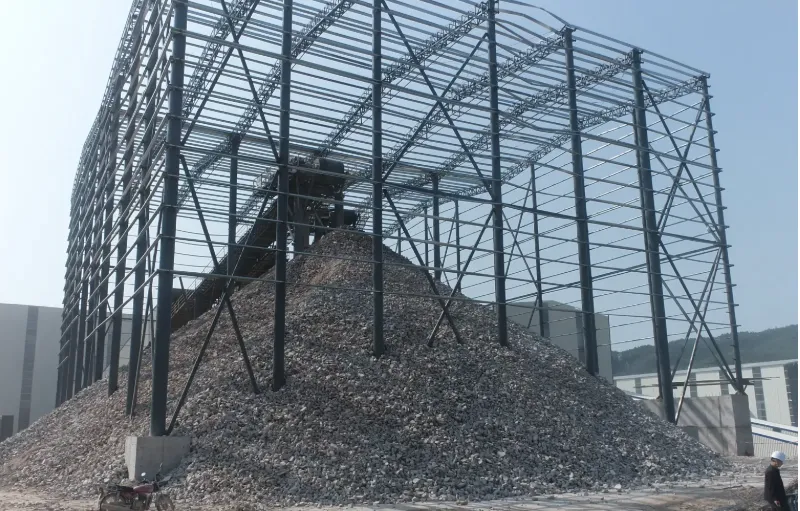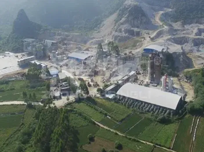 配置:振动给料机、大颚破、多缸液压圆锥破、TLS系列立轴冲击式制砂机、大型振动筛、多台并联脉冲除尘器,可选配洗砂或选粉设备