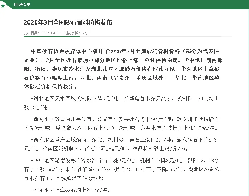 混凝土涨价的同时,上游砂石价格也在悄然攀升。春节后,多地机制砂到厂价上涨了5-15元/吨,部分地区碎石涨幅超过10元/吨。叠加税改带来的发票合规需求,能提供13%专票的砂石矿山,议价能力明显增强,每吨砂石的实际成交价比小作坊高出8-12元。