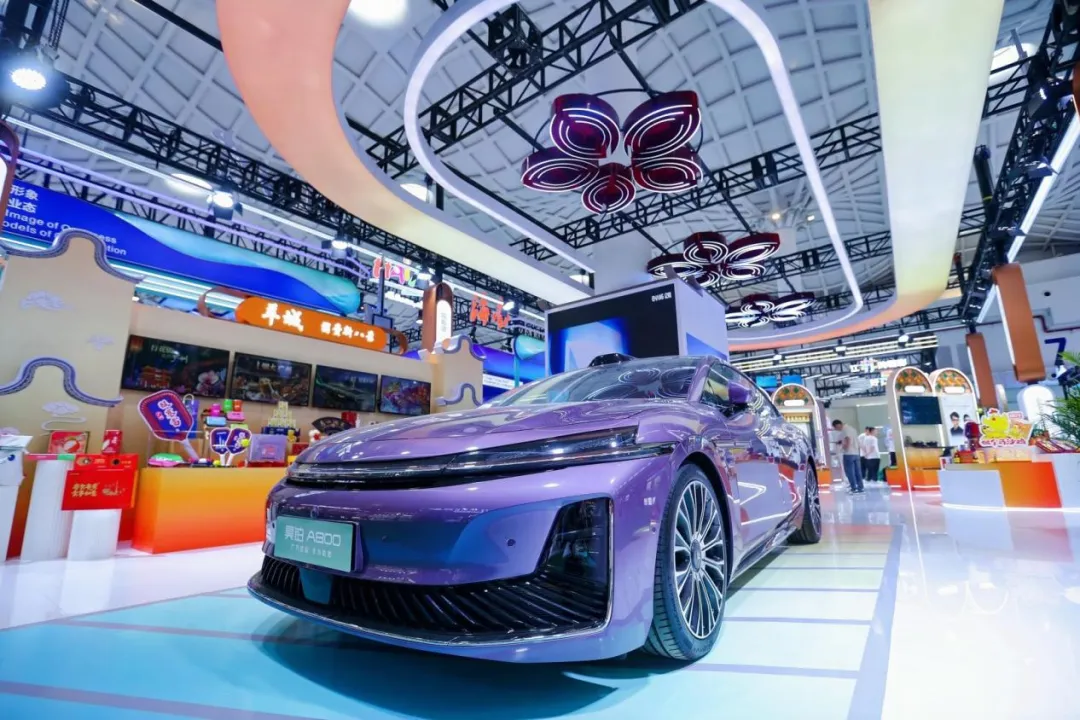 广汽集团旗下子品牌昊铂于今年3月最新推出的A800紫色款车型现场重磅亮相,成为馆内吸睛焦点。这款新豪华智慧旗舰轿车是品牌与华为深度合作、迈入“新豪华2.0时代”的首款车型。