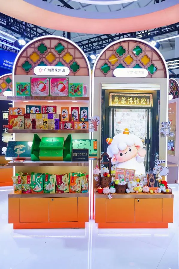 作为拥有90年历史的中华老字号,广州酒家集团携新开业的粤菜博物馆及其IP“饮茶咩”文创产品、国潮IP西关小姐茶点酥饼亮相展会,让广府非遗饮食文化和“得闲饮茶”的广府生活哲学被更多人所了解。