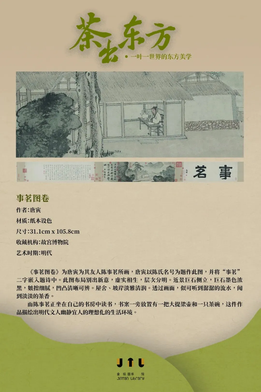 本次展览分为四个单元:唐·茶事初兴、宋·茶韵入道、明清·茶境归真和海外·茶传寰宇,以茶为线索,通过典籍文物与传世书画,追溯茶文化从萌芽到鼎盛、由仪式至心境的嬗变,串联起一部超越朝代与国别的文明交流史。中国的茶文化始终践行着“和而不同”的文明互鉴的智慧,在这里,茶不仅是饮品,更是东方美学的载体、民族精神的隐喻、文明交流的标本,以及人类对美好生活永恒的追索。诚邀观者循墨香茶韵,共赴一场跨越时空的东方美学对话。