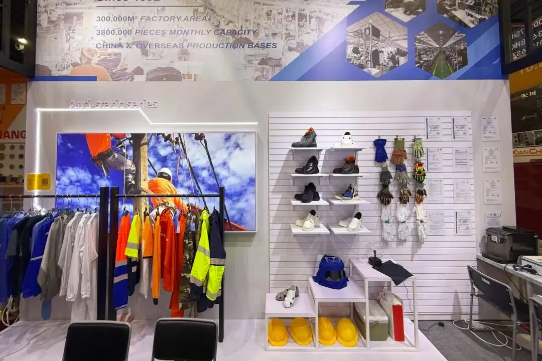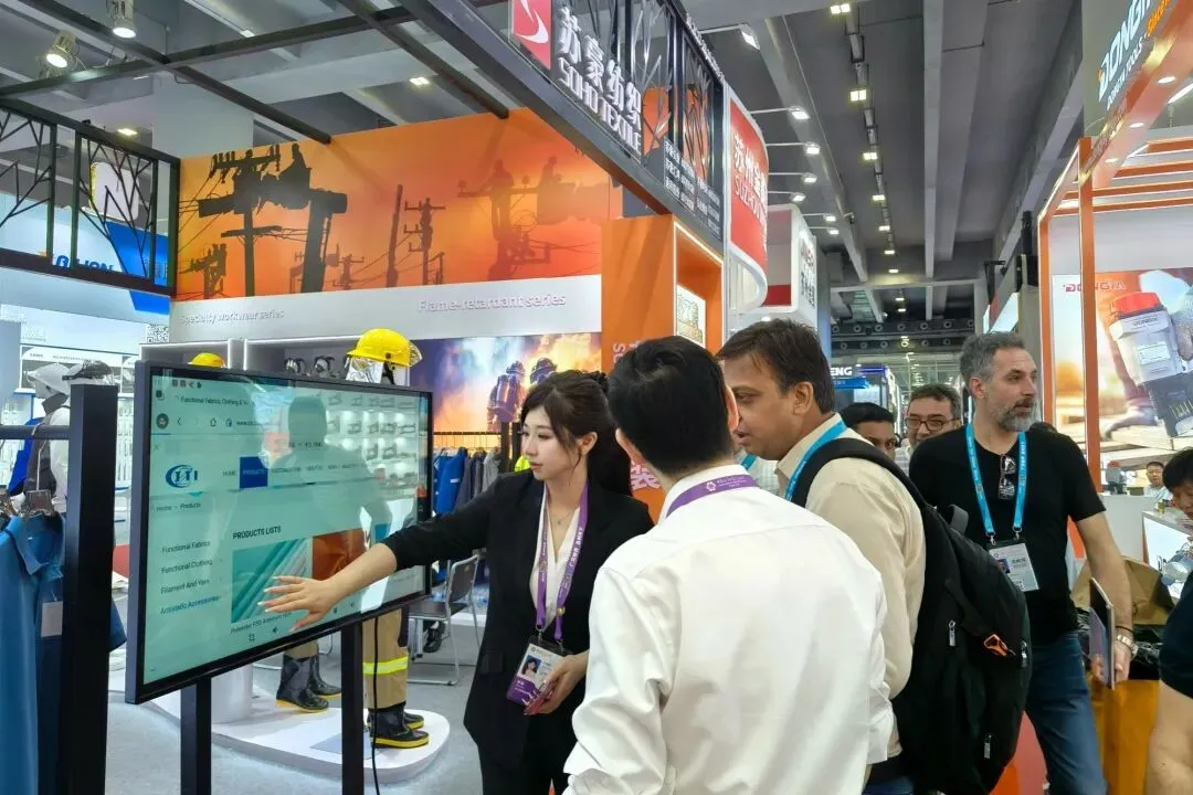 为增强客商认可度,展区现场创新增设功能性实物演示,让防护性能“看得见、摸得着”。