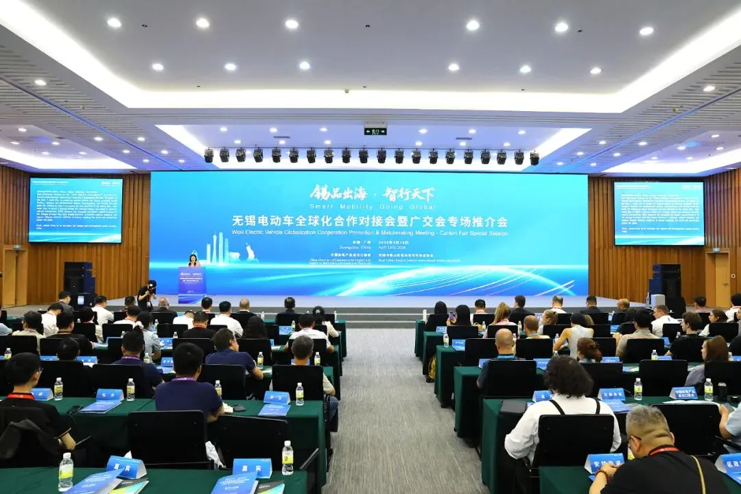 4月16日,“锡品出海•智行天下”无锡电动车全球化合作对接会暨广交会专场推介会在第139届中国进出口商品交易会现场举办。活动借助广交会这一国际窗口,通过“商会+协会+产业+采购”的多元形式整合资源,进一步打响“中国电动车看锡山”的国际品牌。