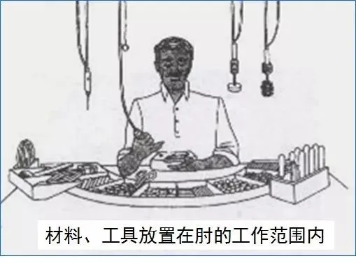 ②材料、工具放置在肘的工作范围内;(图四)