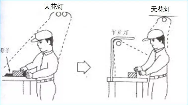 ⑦降低动作注意力;测量时用固定规格及定位等手段,使测量工作减少脑力判断过程;例:胶筒或电批用平衡器悬吊为佳;在计量仪表、器具的显示位置处设备明显标识,使之更加容易辨认或以声、光等信号尽量减少识别的注意力等。