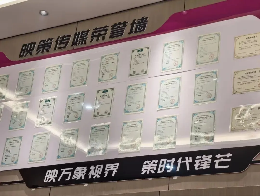 每一项认证,都是前行的基石 映策传媒与梵影智涌科技的实力,不仅体现在服务客户的口碑中,更沉淀在这一面满满的荣誉资质墙上。从软件著作权到作品登记证书,每一张证书都是我们技术创新与内容生产力的权威背书。