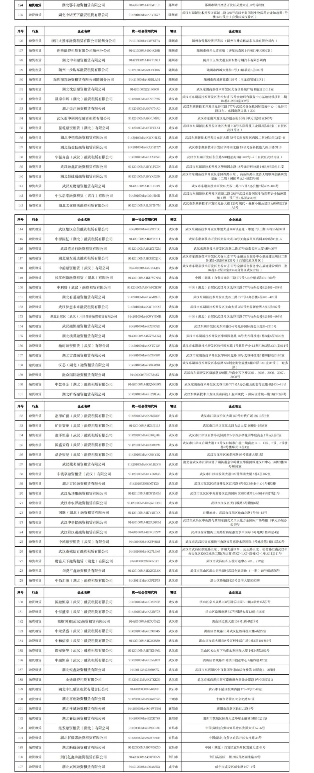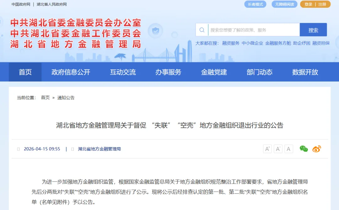 近日,湖北省地方金融管理局公示了197家“失联”“空壳”地方金融组织,督促其退出行业。