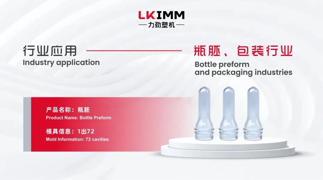 针对包装行业瓶胚生产,118mm/s 超高速注射,2.97s 极速开合模,1 出 72 腔高效量产,高透明、无黄变,食品医药包装首选;开合模系统为深腔模具优化,整周期大幅缩短,搭配高速侧取自动化,同时全程洁净设计有效杜绝黑点与污染。