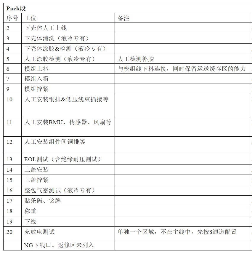 1.整个PACK产线的通用技术要求如下: