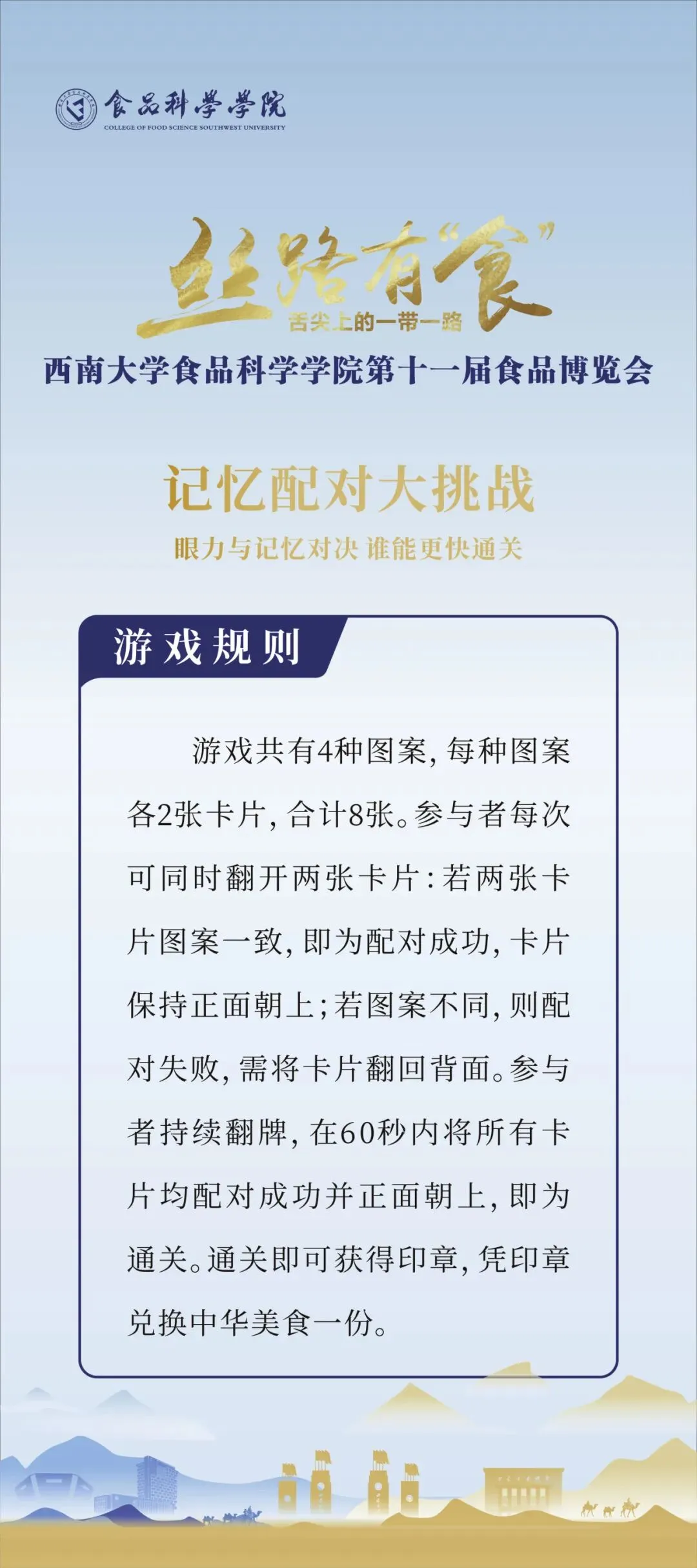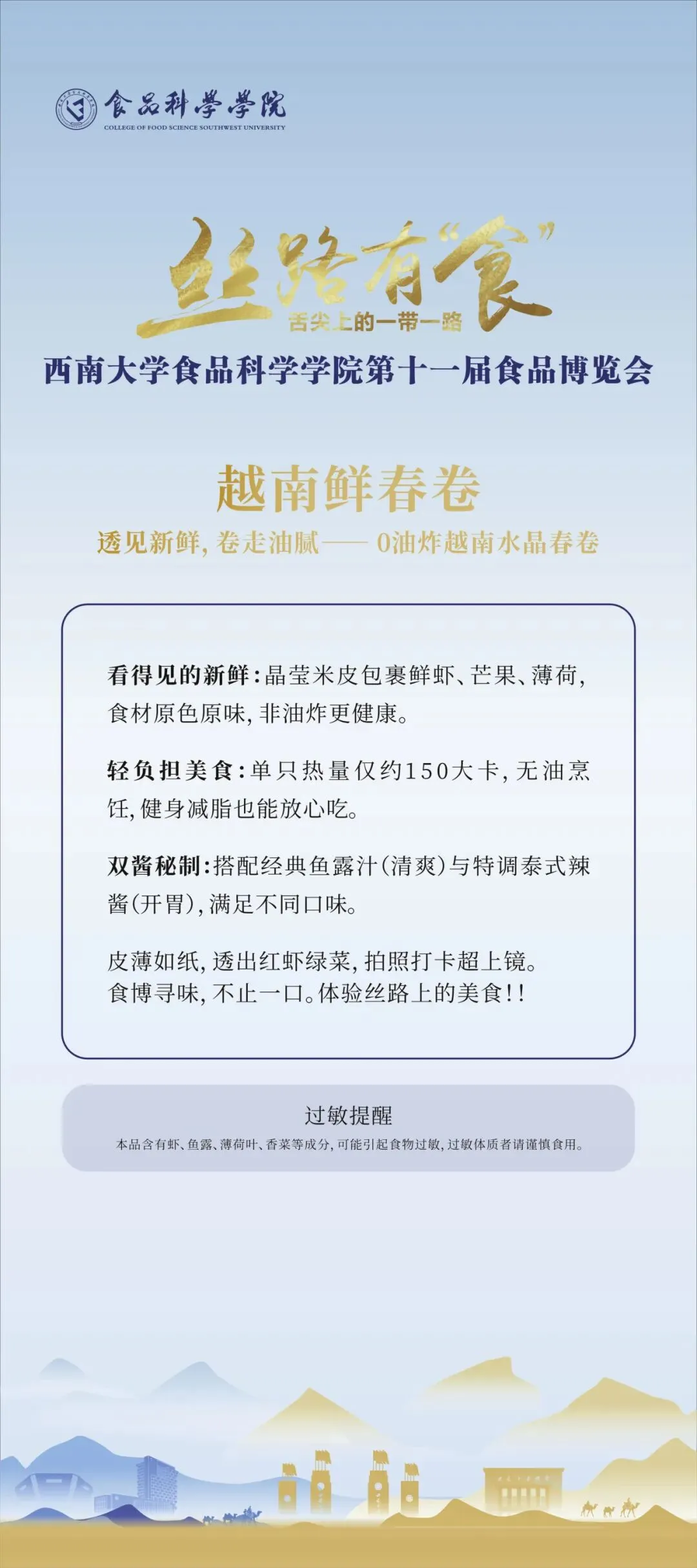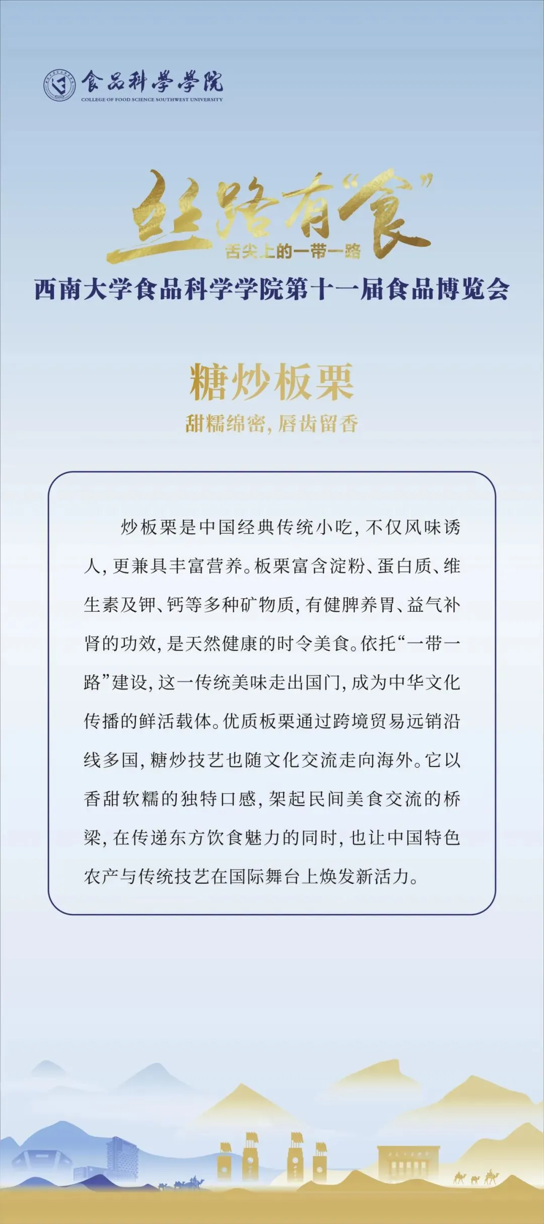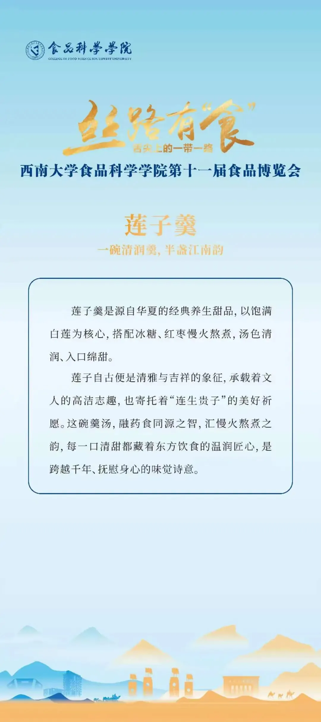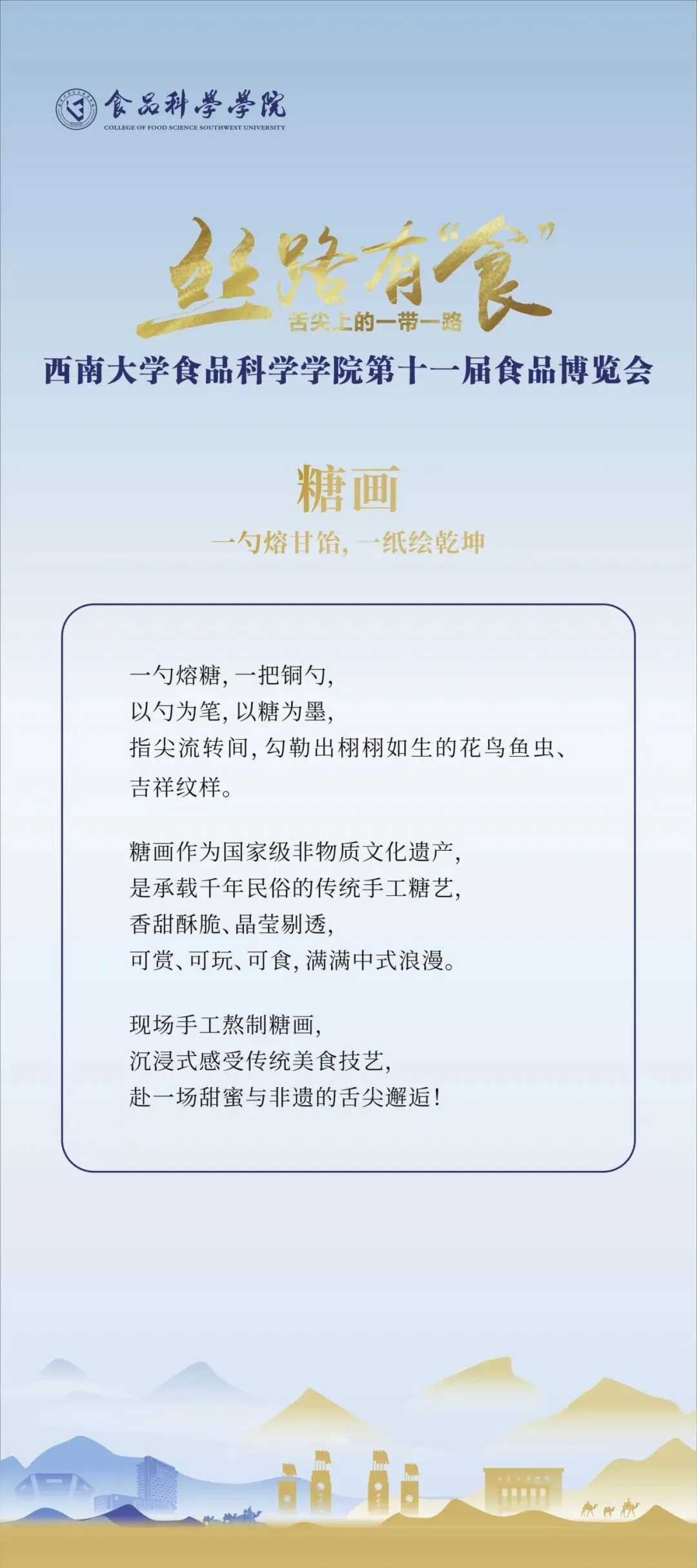 今年是西南大学办学120周年,学校底蕴深厚、成果丰硕。中国—匈牙利食品科学“一带一路”联合实验室启动建设,国际合作再获突破。为赓续百廿文脉、深化丝路合作,第十一届食品博览会以“丝路有‘食’ 舌尖上的一带一路”为主题,融合校庆、丝路美食、中匈合作与校园体验等,联动行业企业搭建产学研交流与就业对接平台,以美食为媒、文化为桥、科技为支撑,献礼百廿校庆、展示国际交流成果,助力食品专业人才培养,让师生感受食品科学魅力与开放办学格局,共庆百廿荣光、共话丝路未来。