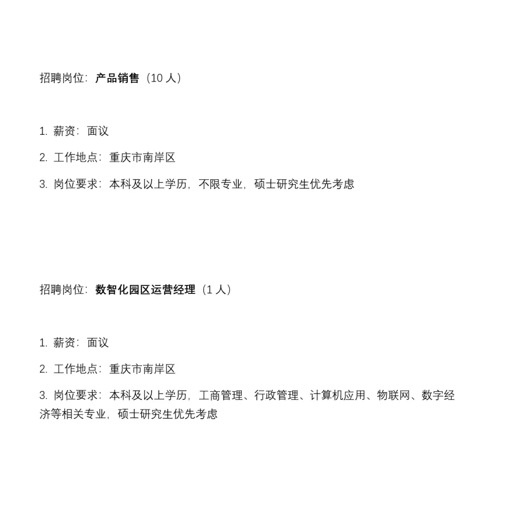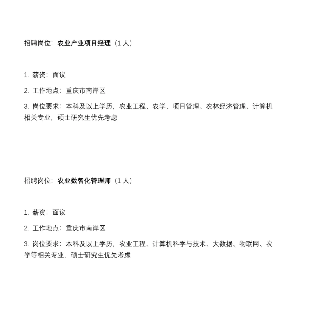 招聘岗位:产品销售人员,数智化园区运营经理,农业产业项目经理,农业数智化管理师