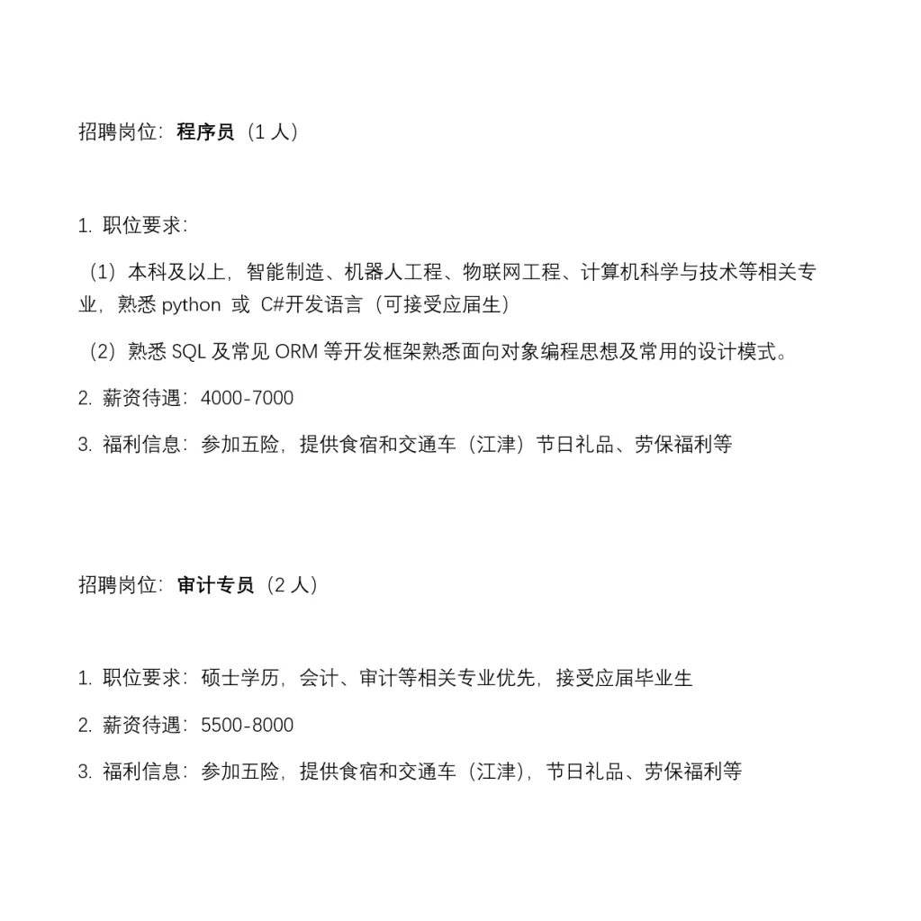 招聘岗位:程序员,审计专员,储备干部(管培生)