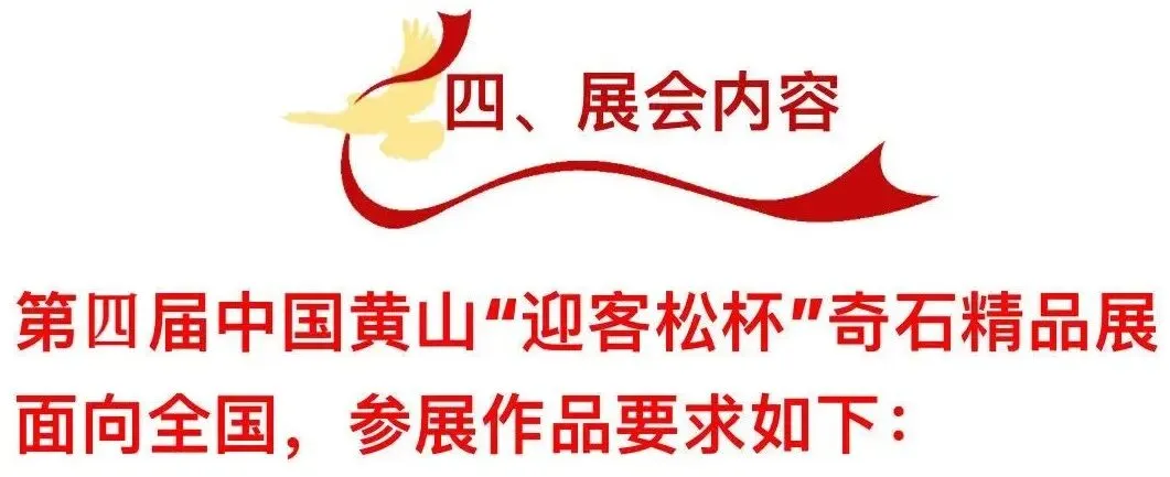 1. 第四届中国黄山“迎客松杯”奇石精品展面向全国,参展作品要求如下: