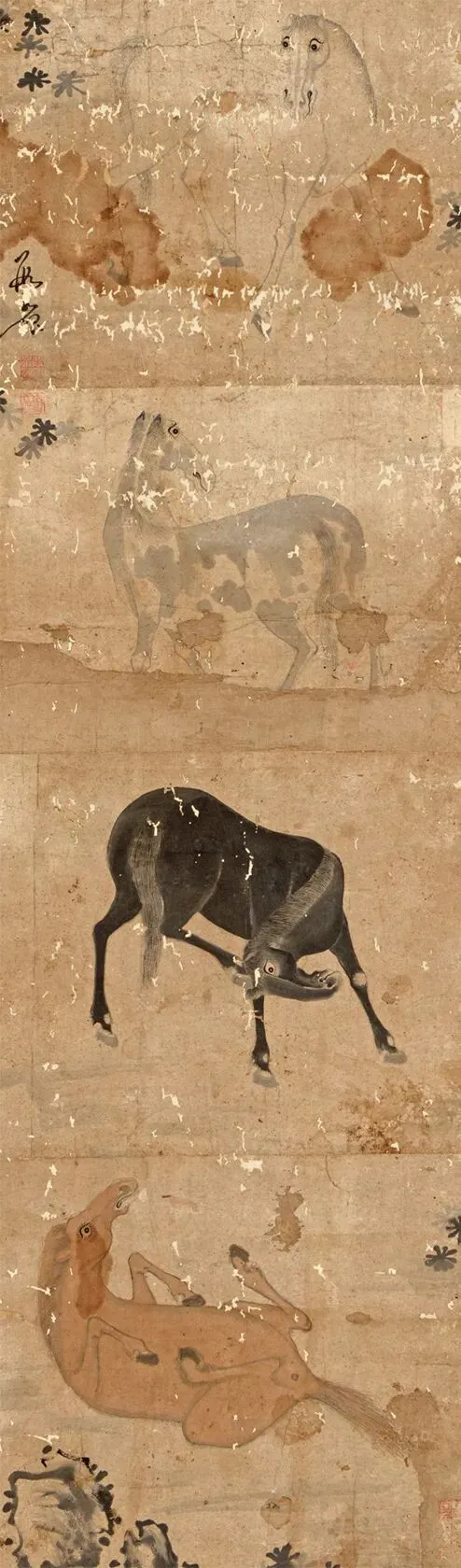 昆明市晋宁区博物馆藏 清 段永源 四马图轴