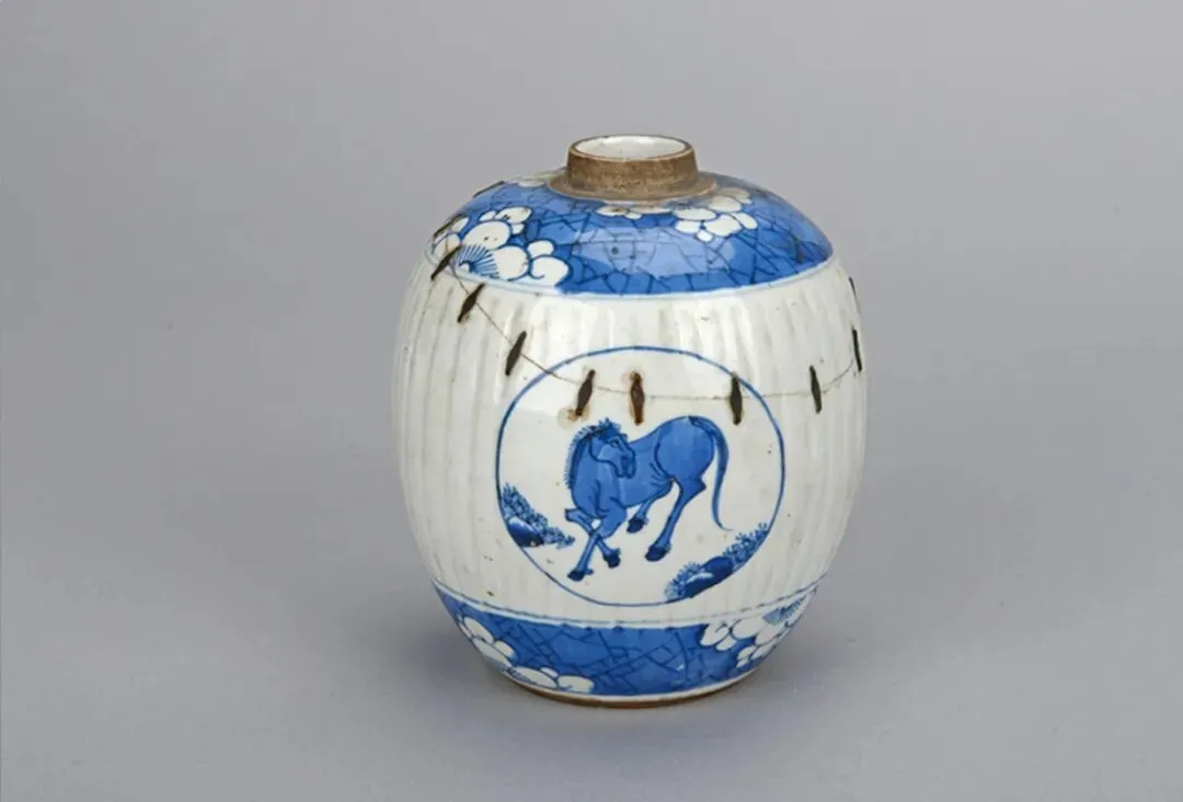 泰安市博物馆藏 清康熙 青花三马纹瓷罐
