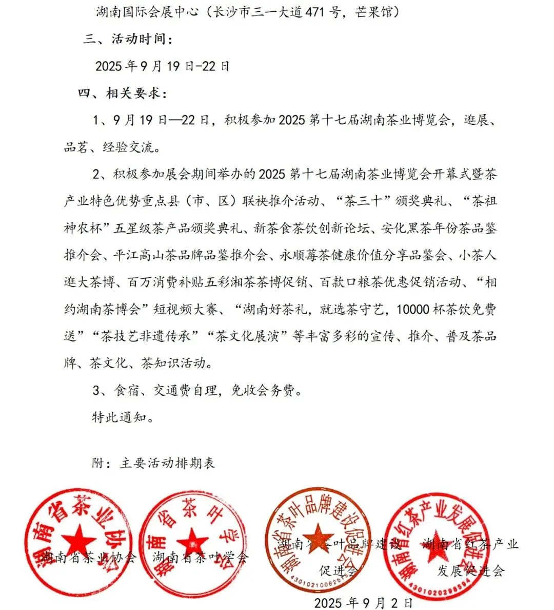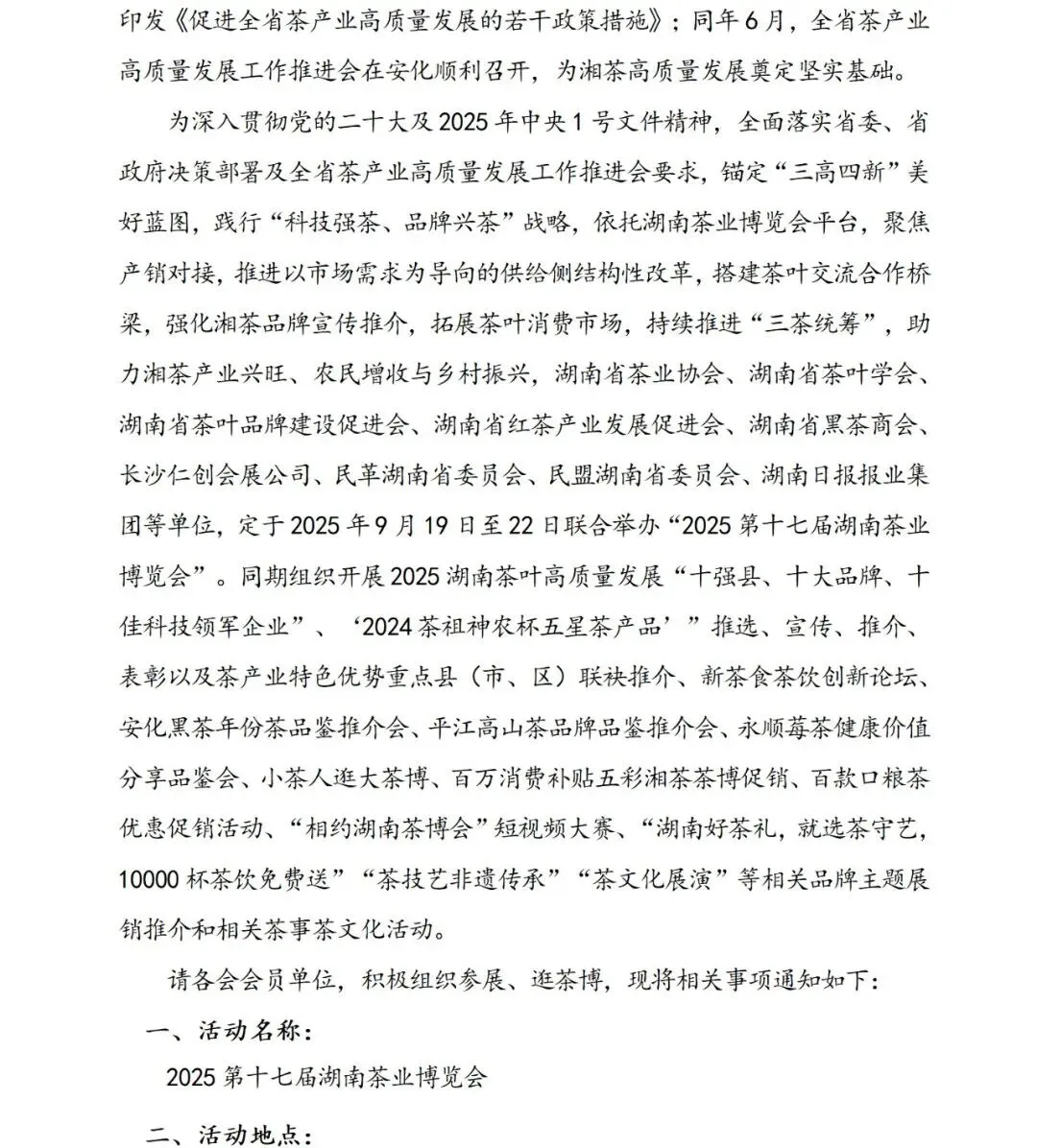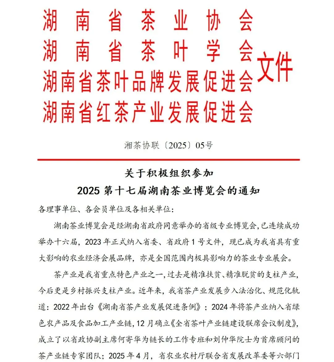 关于组织参加2025第十七届湖南茶业博览会的通知