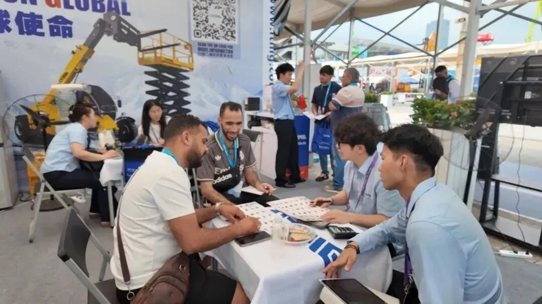 厦门临晟集团产品覆盖叉车、挖掘机等35大品类,深耕南美、中东等50余国市场,现场展示明星产品、发布新产品、提供定制化ODM/OEM解决方案,吸引众多海外客商关注问询。