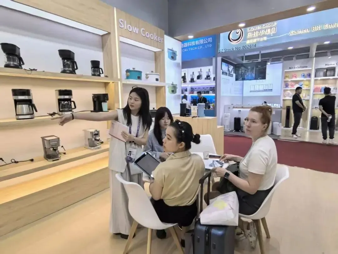 厦门奥佳华智能健康科技集团携咖啡机、空气净化器及高端按摩器等产品亮相。其中,拥有自主发明专利的手冲咖啡机和可变压意式咖啡机吸引大批境外采购商驻足洽谈,企业利用广交会深化对接海外客户,积极拓展海外市场。