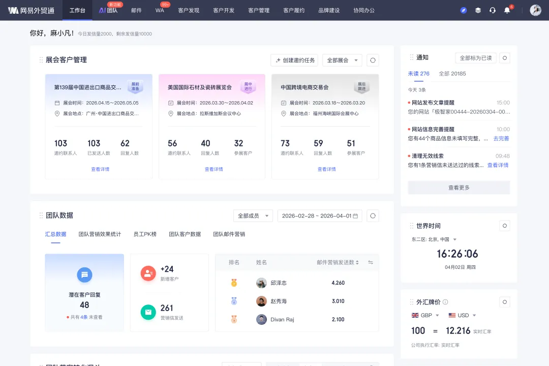 推荐网易外贸通AI运营专家的「展会运营任务」功能,系统化地管理展会获客全流程: