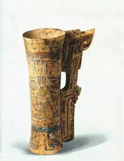 属商代,1976年安阳市殷墟妇好墓出土。这件象牙杯高30.5厘米,是用象牙根段制成,因料造型,颇具匠心。现藏中国国家博物馆。