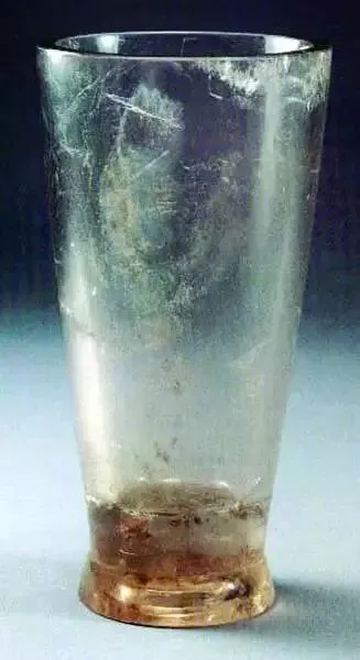 属战国时期,1990年杭州半山镇石塘村战国墓出土。素面无纹饰,透明,器表经抛光处理,器中部和底部有海绵体状自然结晶。此杯是用优质天然水晶制成的实用器皿,国内罕见。现藏浙江省文物考古研究所。