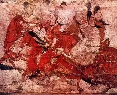 属北齐时期,1979年山西太原娄睿墓出土。《鞍马出行图》位于墓道西壁中栏、作长卷式展开。现藏山西省博物馆。
