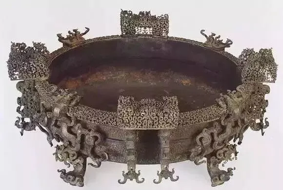 属战国早期,1978年湖北随州擂鼓墩曾侯乙墓出土。这一发现,证实了在二千四百年前的战国早期,中国的失蜡法铸造技术已经达到极高的水准。现藏湖北省博物馆。