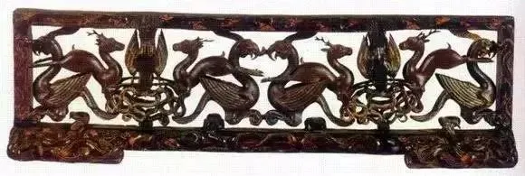 属战国时期,1965年湖北省江陵望山1号墓出土。通高15厘米、长51厘米、座宽12厘米、屏厚3厘米。现藏湖北省博物馆。