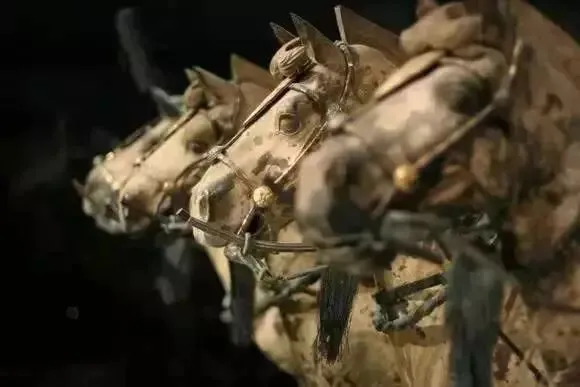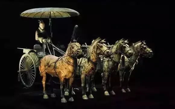 属秦代。共两乘,一前一后排列。经复原,大小约为真人真马的二分之一。现藏秦始皇兵马俑博物馆。