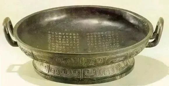 属西周康王时期,清道光间在陕西眉县礼村出土。大盂鼎是现存西周青铜器中的大型器,造型端庄稳重、浑厚雄伟、典丽堂皇,为世间瑰宝。现藏中国国家博物馆。