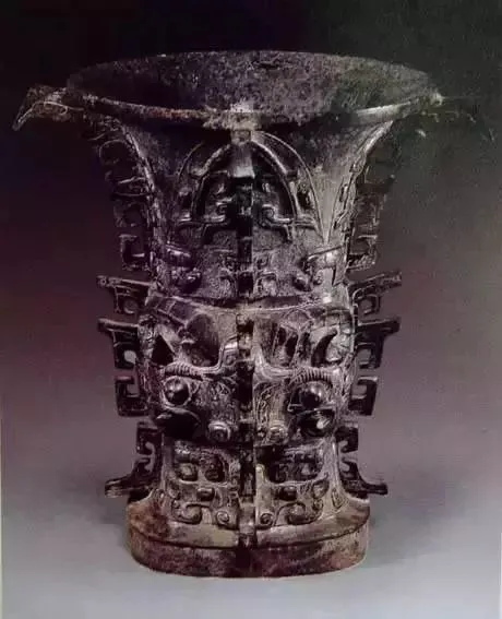 属商代,1986年四川广汉三星堆一号祭祀坑出土。遍体满饰图案,生动刻画了原始宗教祭祀场面。现藏三星堆博物馆。