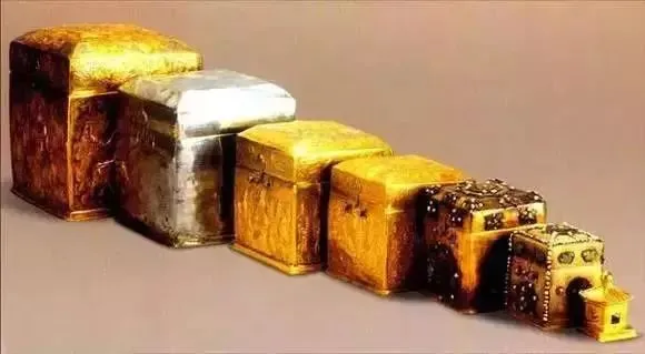同为法门寺地宫出土。八重宝函的第一重即佛指舍利所藏立之所。