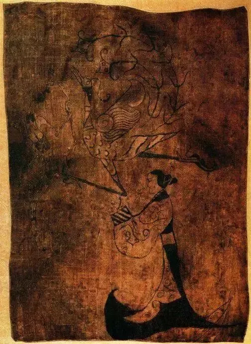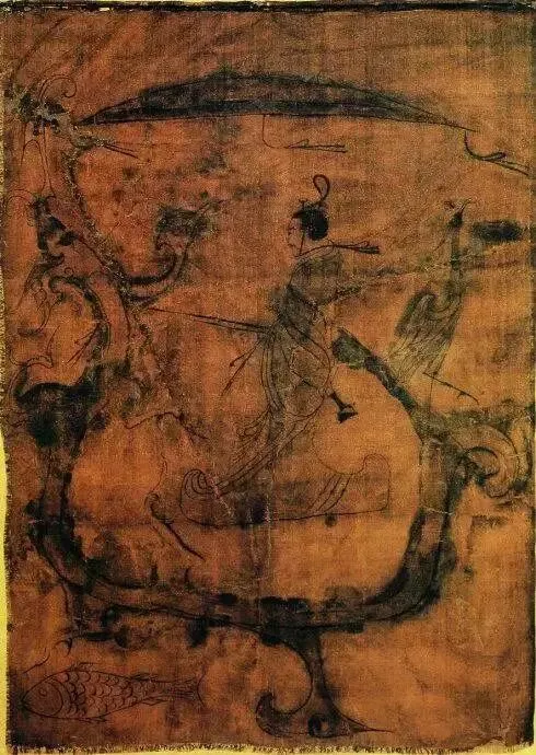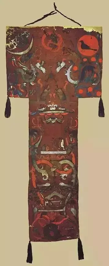帛画覆盖在一号墓即辛追墓的内棺上。画面上中下三部分分别表现了天上、人间与地下的场景,体现了西汉初年的神仙方术思想,学者认为帛画的作用是接引死者走向天国。