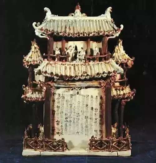 江西省博物馆收藏了一件在景德镇出土的青花釉里红瓷器——楼阁式瓷仓。为1979年9月,丰城县文化馆在省文物商店的协助下征集到的。青花釉里红瓷器,甚为罕见,作为楼阁式瓷仓,并且有明确纪年,迄今仅为孤例。