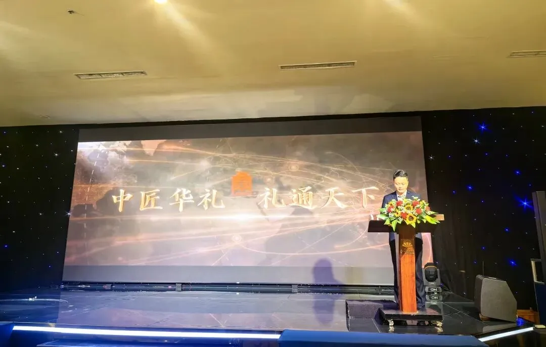 中匠华礼集团首席国际商务官彭于斌先生在晚宴上致辞,他表示,作为中国高端礼品定制领域的标杆企业,中匠华礼集团始终坚守 “匠心传承,礼通天下” 的核心使命,深耕礼品文化传承与产业创新,专注为企业、商协会及各界合作伙伴,打造兼具东方文化底蕴、实用价值与高端质感的定制化礼品解决方案。未来,中匠华礼集团将持续以礼为媒,推动中华优秀礼文化走向全球,携手海内外伙伴同心聚力、共筑共赢,共启国际礼遇产业新征程。