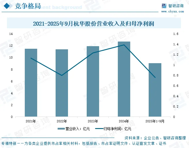 杭华油墨股份有限公司是专业从事符合国家环保战略方向的节能环保型油墨以及功能类材料、电子化学品新材料的研发、生产和销售服务的高新技术企业,各系列油墨产品和功能类材料广泛应用于食品饮料、医药卷烟和日化用品包装,以及出版商业印刷、广告媒体和先进工业制造等不同领域,为客户提供优质的印刷材料相关产品和整体解决方案。2025年1-9月公司实现营业收入9.07亿元,同比下降1.62%;归母净利润0.76亿元,同比下降25%。