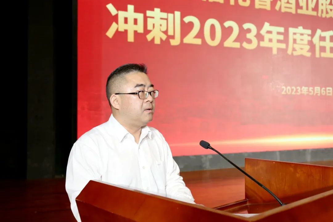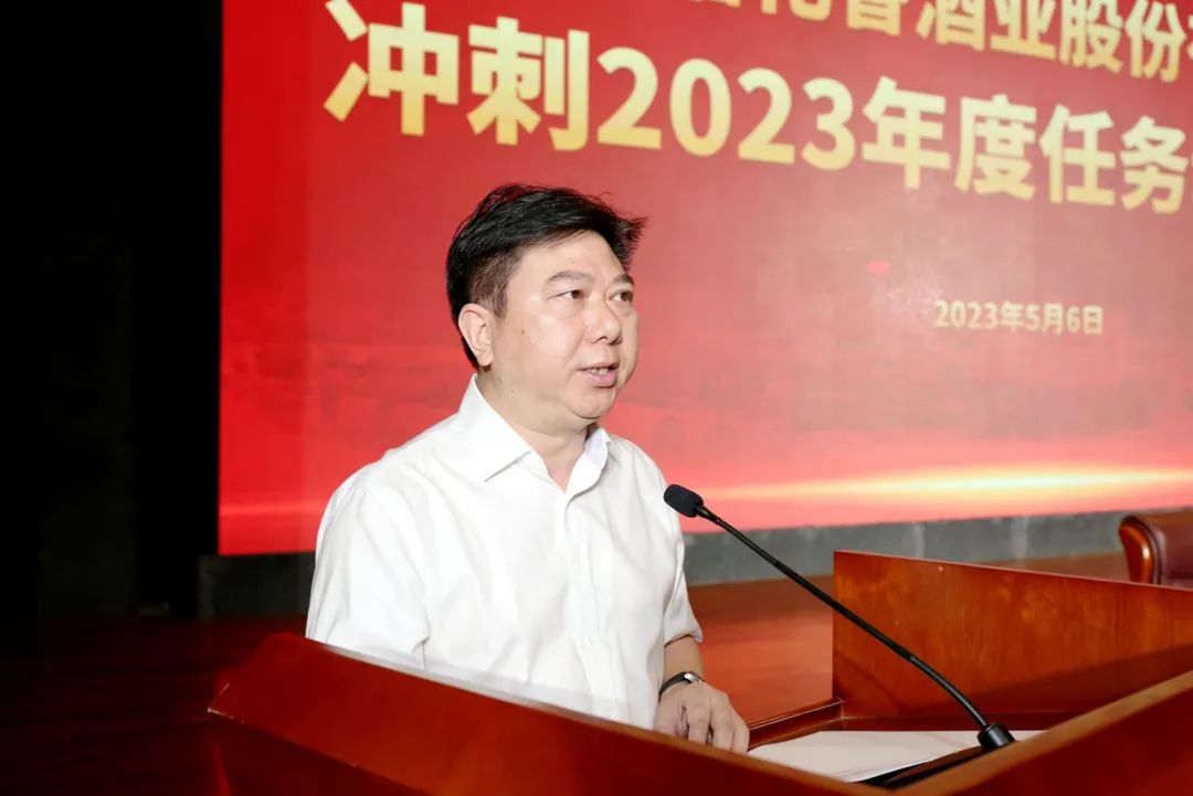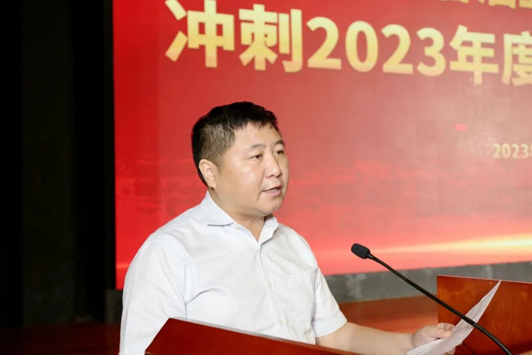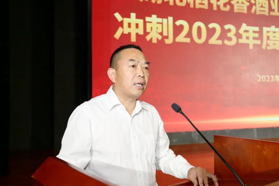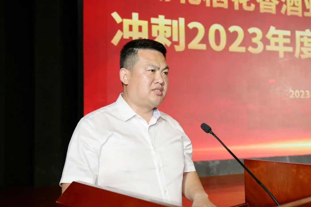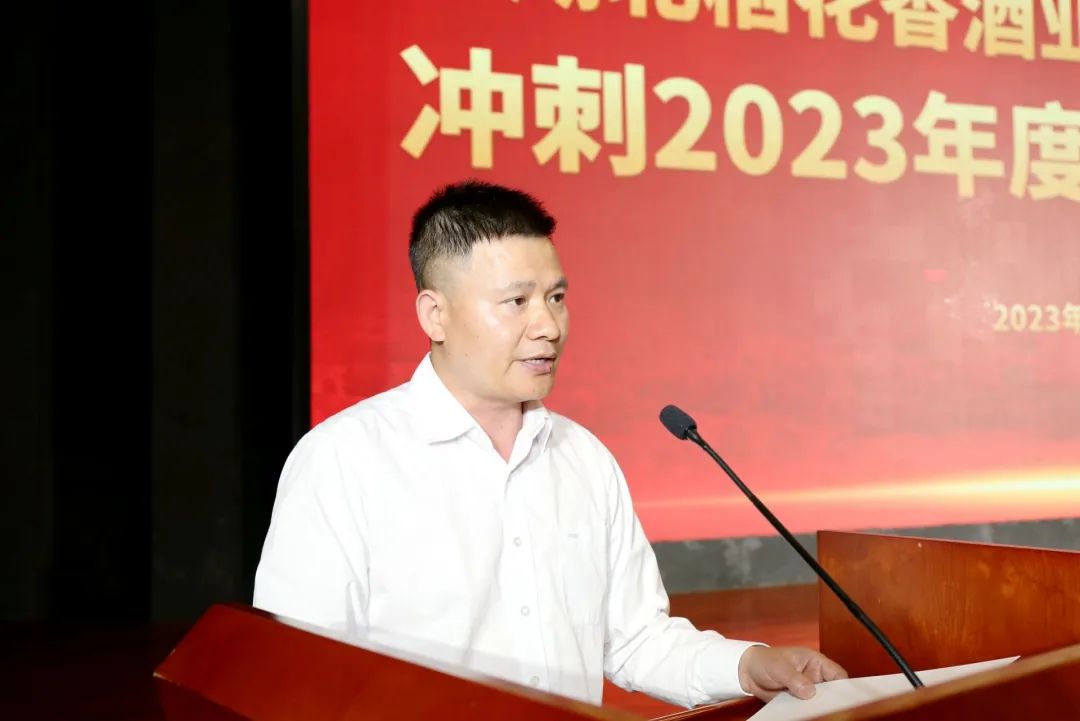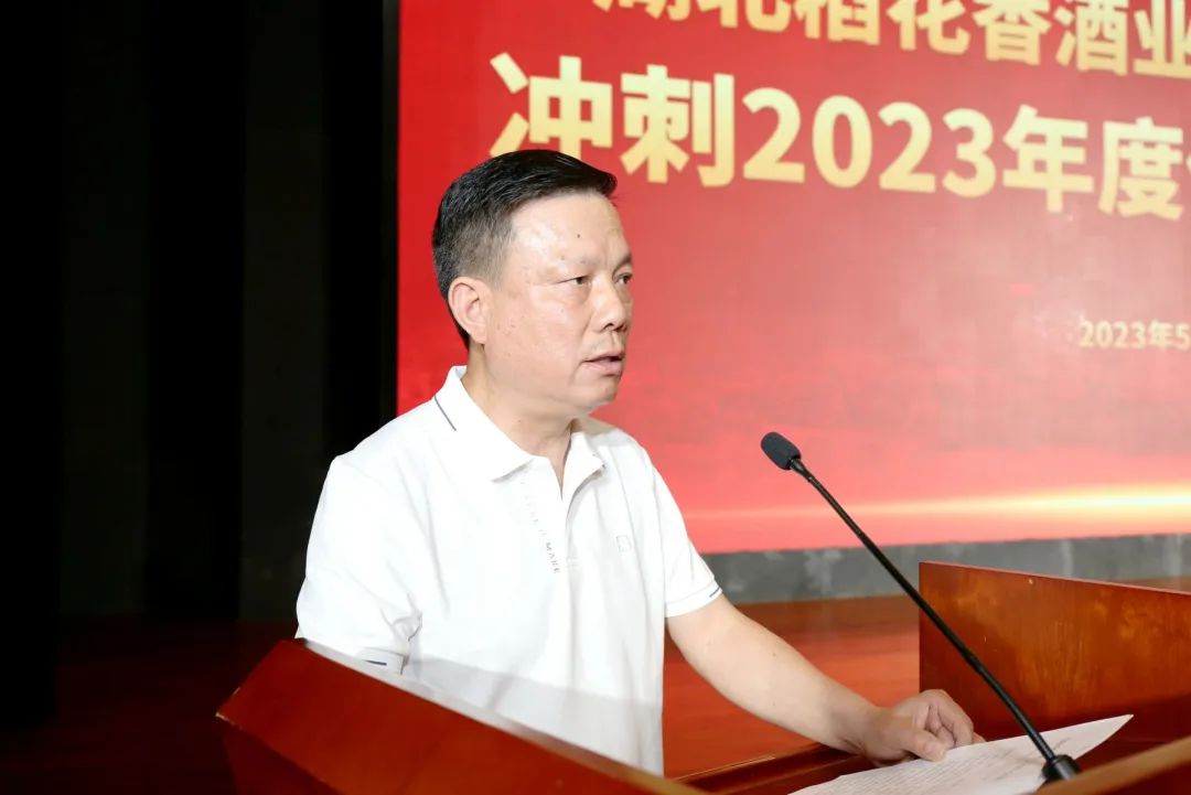 稻花香酒业公司副总经理杨海波宣读《关于下达2023年5-6月份回款与核心产品发货任务的通知》。公司副总经理陈小磊主持动员大会。公司副总经理苏顺平,营销公司各大区、馫香事业部负责人,协丰公司总经理钱海民分别上台发言,表达了聚力攻坚,冲刺年度任务的信心和决心,阐述了实现目标的措施和方法。
