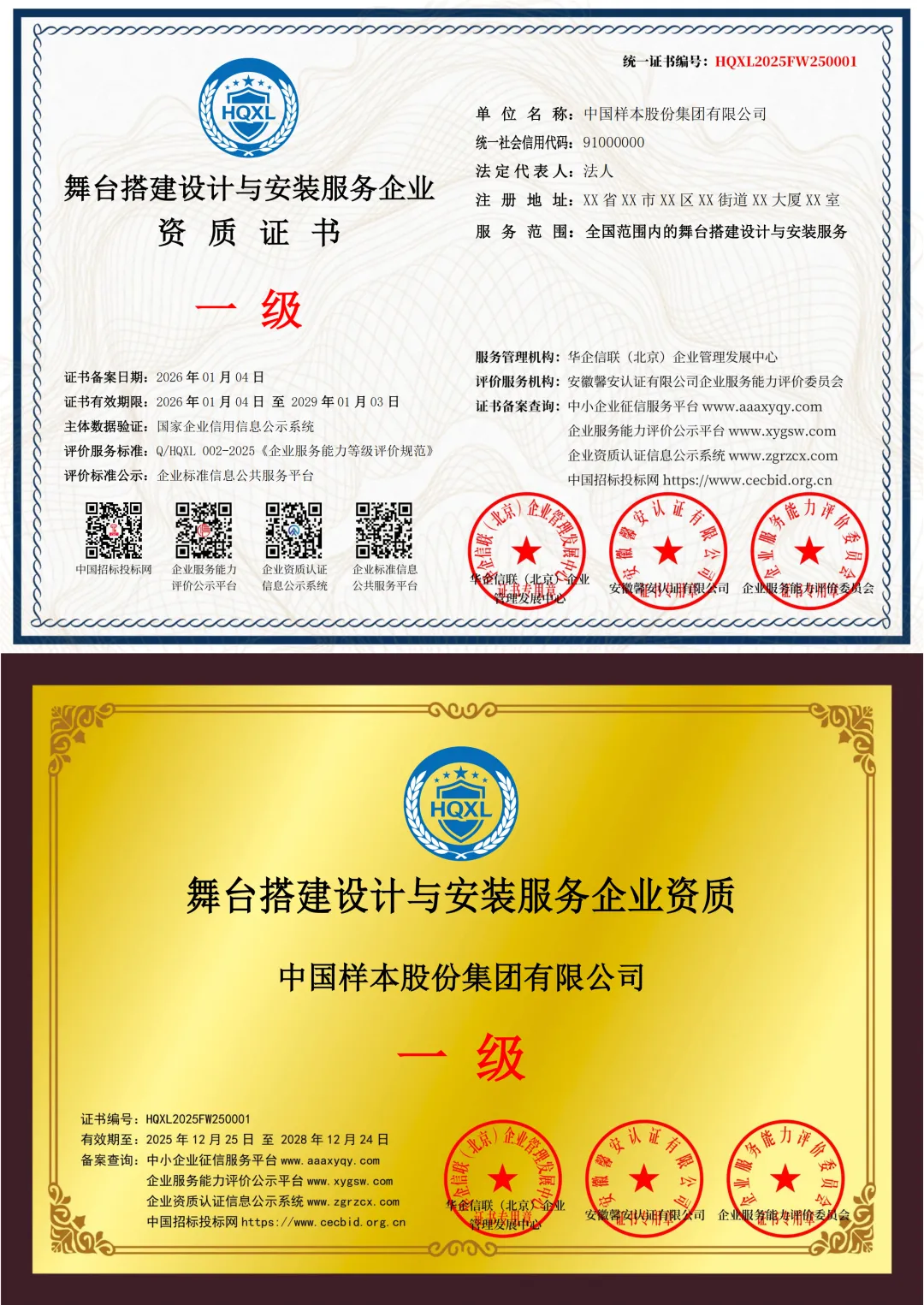 舞台舞美及展览展示一体化设计服务企业资质证书