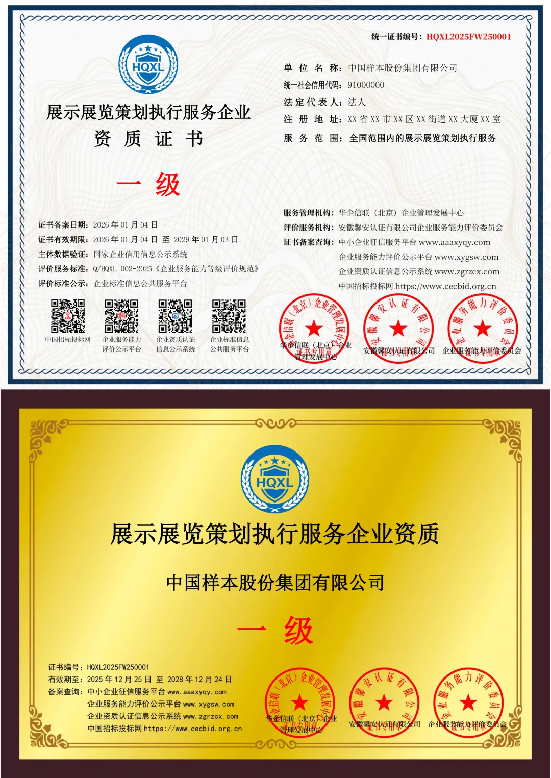 展览展示室内外装修设计与施工一体化服务企业资质证书
