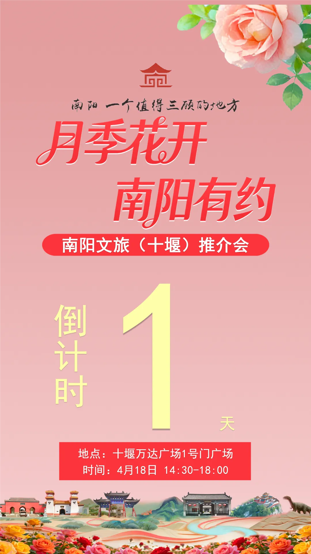 春风送香,赴约而来!4月18日,南阳文旅推介会将走进十堰万达广场1号门广场。