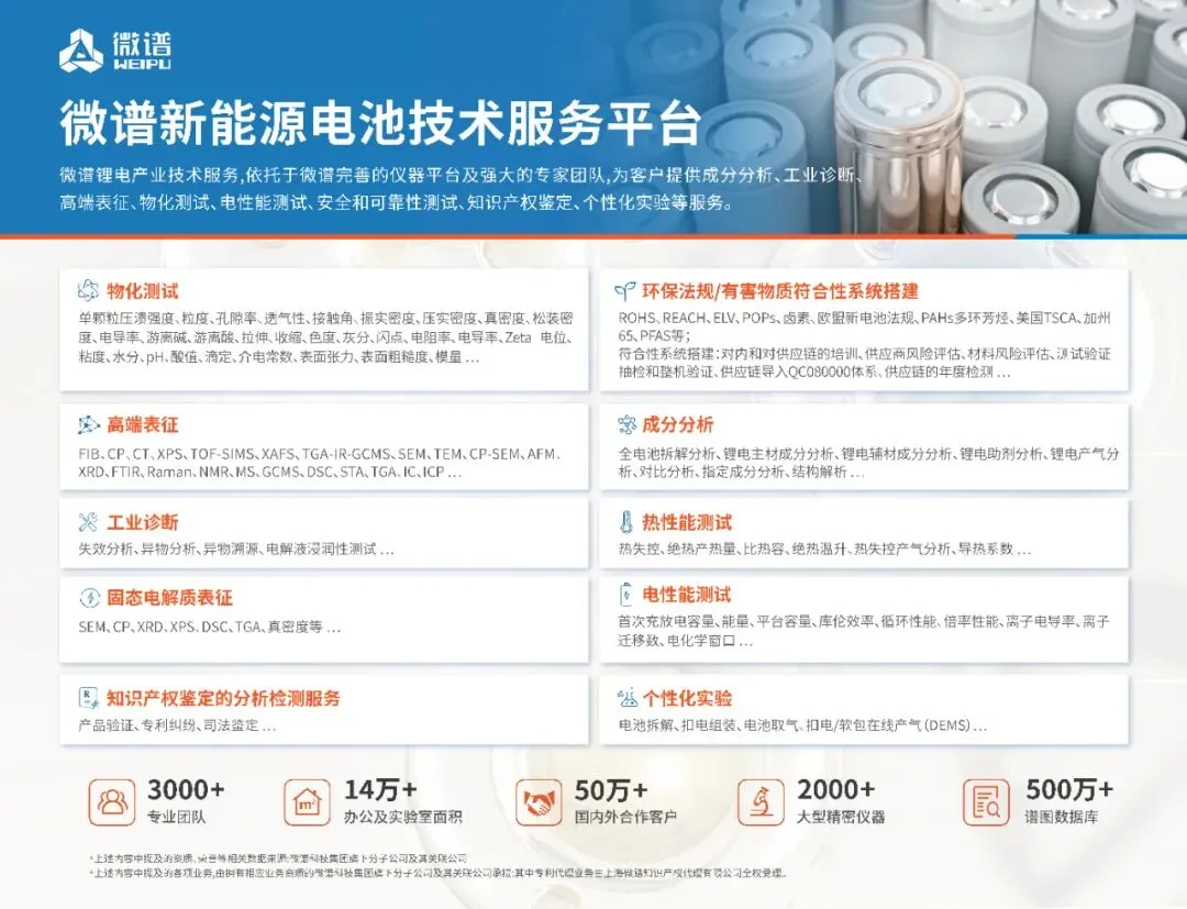 新能源电池技术革命浪潮下,微谱携覆盖锂电全产业链的创新解决方案重磅亮相!微谱依托成分分析平台、材料检测体系和专业仪器测试方案,致力于为合作伙伴提供一站式技术赋能。