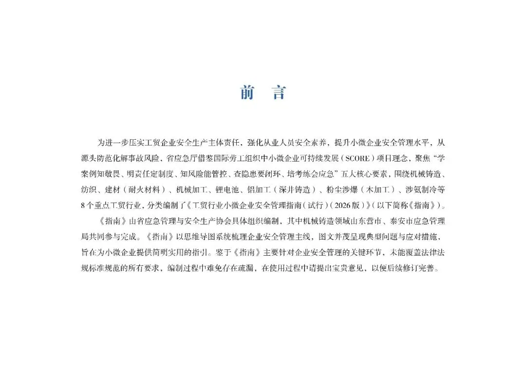 山东省应急厅《工贸行业小微企业(机械铸造)安全管理指南》