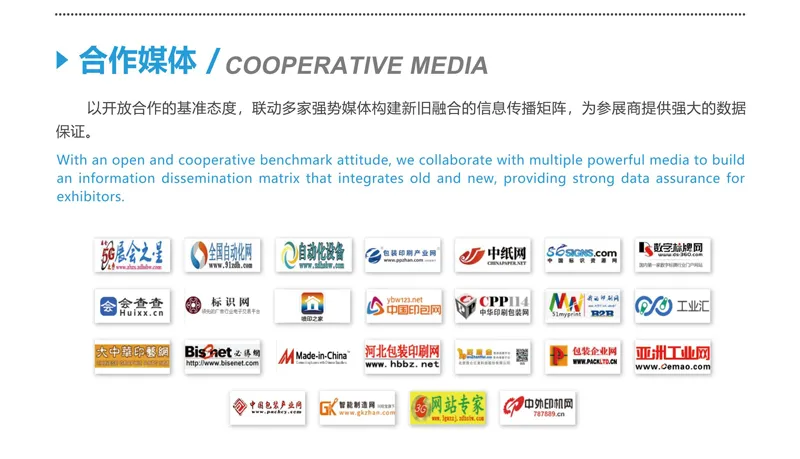 8)服务和其他展区:纸张、承印物、油墨和耗材、配套和基础设施、服务和软件业等