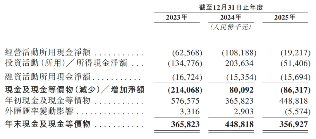 现金流与资金储备方面,公司尚未形成稳定造血能力,2023-2025 年经营活动现金流净额连续为负,分别为 - 0.63 亿元、-1.08 亿元、-0.19 亿元;账面现金储备波动明显,2023 年末 3.66 亿元、2024 年末升至 4.49 亿元,2025 年末回落至 3.57 亿元。