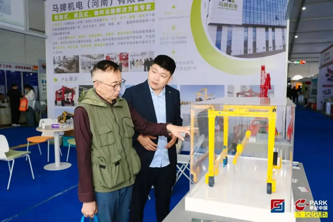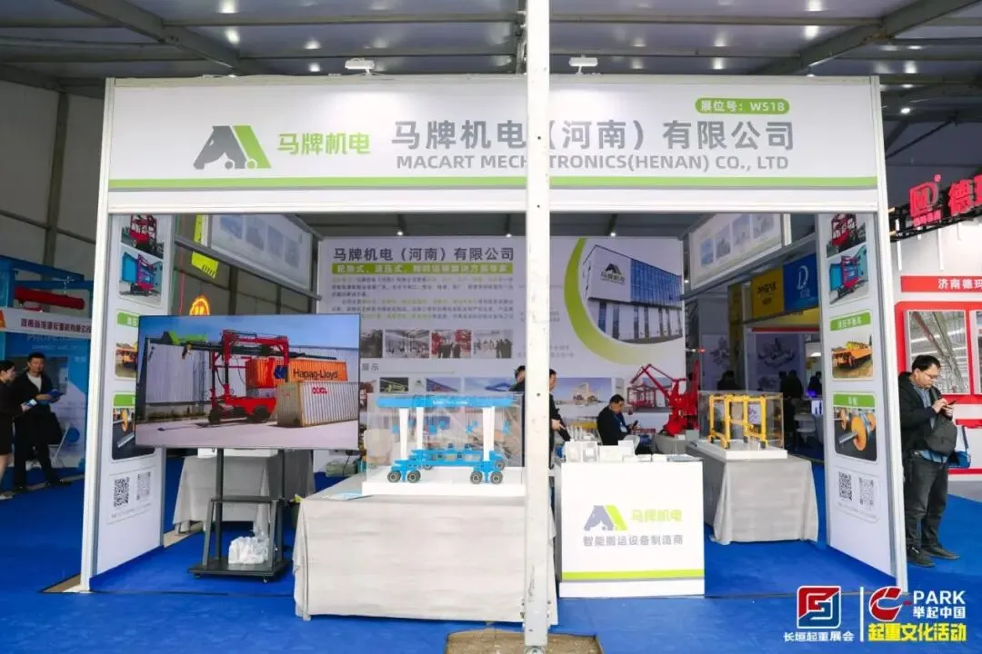 作为中外合资的智能物料搬运装备制造商,马牌机电扎根“中国起重之乡”长垣,聚焦跨运车、轮胎吊、液压平板车、液压起重机、游艇吊等多种搬运品类。展会现场,其主打产品液压传动跨运车成为焦点——20-80吨重载承载、全轮转向灵活作业、适配狭窄通道与高密度堆场,效率较传统设备提升60%以上,吸引众多客商驻足咨询。