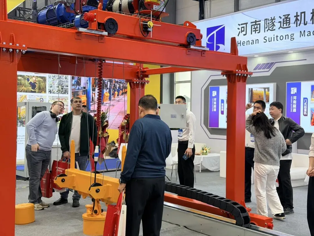 步入河南隧通展区,造船门机、门座起重机、集装箱门机、抓斗卸船机等系列产品依次排开,覆盖港口、矿山、建筑等多个专业领域。凭借行业领先的自动化控制系统和作业精度,这些产品一经亮相便吸引了众多客商驻足观摩,赢得参展客商和行业专家的广泛赞誉。这是对公司多年来在高精度加工、焊接技术和质量控制体系上深厚积淀的最好证明。