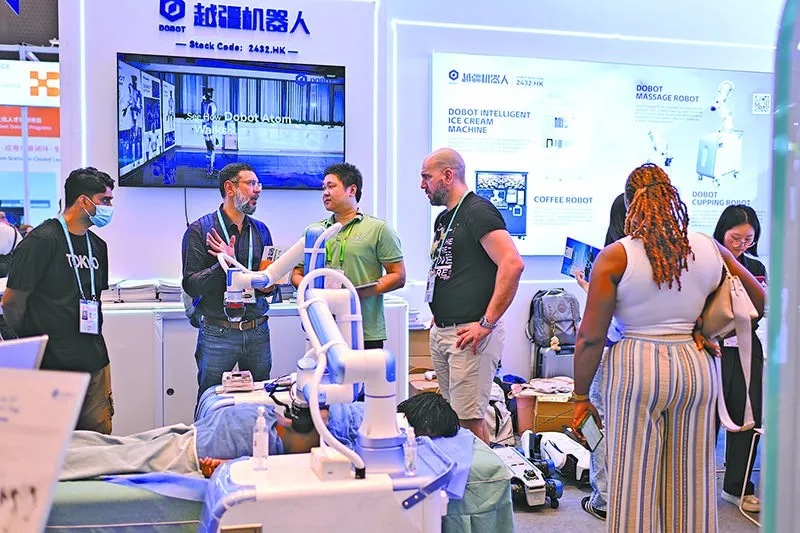 本届广交会上,机器人是热门主题之一。证券时报记者在服务机器人展区看到,越疆机器人的展台前聚集了大量境外采购商,他们体验如何用机器人点一杯冰淇淋、咖啡,甚至有的还体验上了机器人按摩和拔罐。